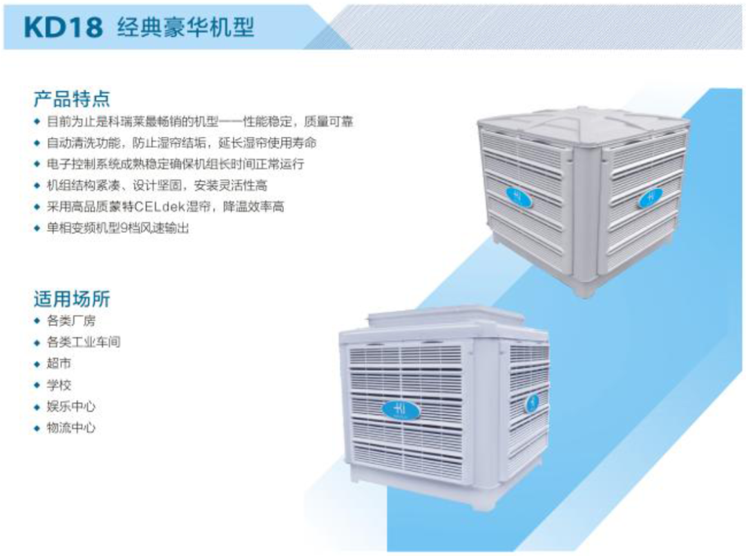 技术人员对小编说:“z6尊龙凯时选购的是z6尊龙凯时冷气机。降温通风的效果杠杠的。z6尊龙凯时厂里每个人都对它赞不绝口!”据了解,z6尊龙凯时18系列冷气机,仅用1.1KW的功率驱动大量的空气流动(18000m³/h)带来大面积自然穿堂风体验,使用者根据环境气温变化可通过无极调速至极佳体感温度。单台覆盖面积超过200平米,夏季人体感受温度可下降5-8度,也可以配合空调使用,甚至在某些条件下可以替代空调。是高大宽阔的空间通风降温的完美解决方案。